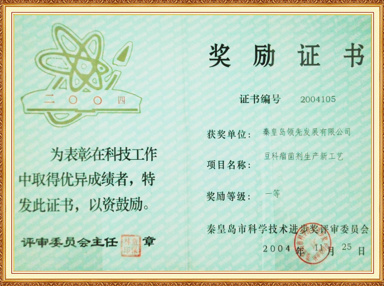豆科瘤菌劑生產新工藝—秦皇島科學技術進步一等獎